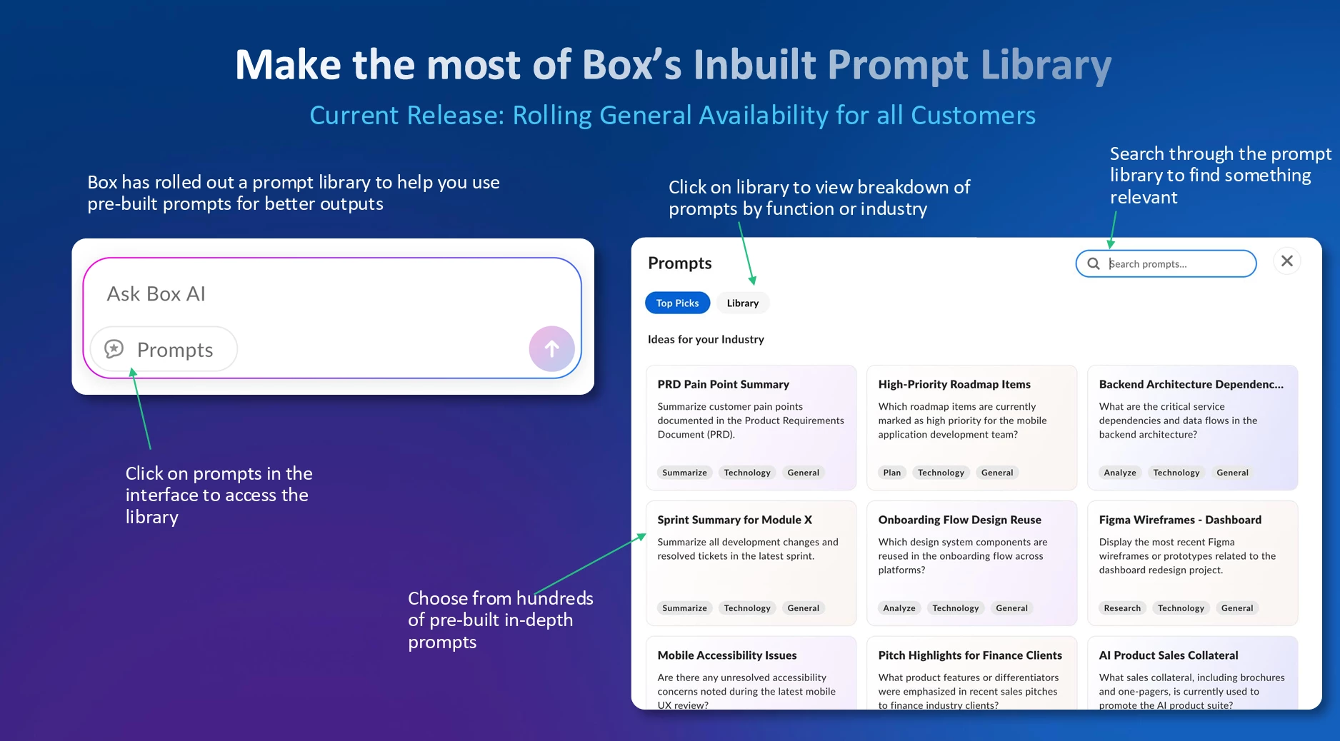Additionally, Box plans to roll out a prompt library, pre populated with templates for industries and use cases like research, creation, or analysis, enhancing workflow efficiency for users.